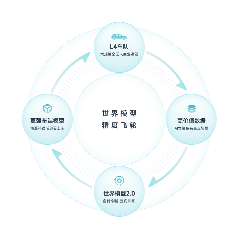 这种机制构建起了一道令竞争对手难以逾越的数据飞轮护城河。只有像小马智行这样,在真实世界中拥有庞大 L4 级无人车队并进行大规模商业运营的公司,才能源源不断地产生高质量的交互数据。这些数据反哺世界模型,提升模型精度,进而增强车端能力,最终支撑更大规模的车队部署。