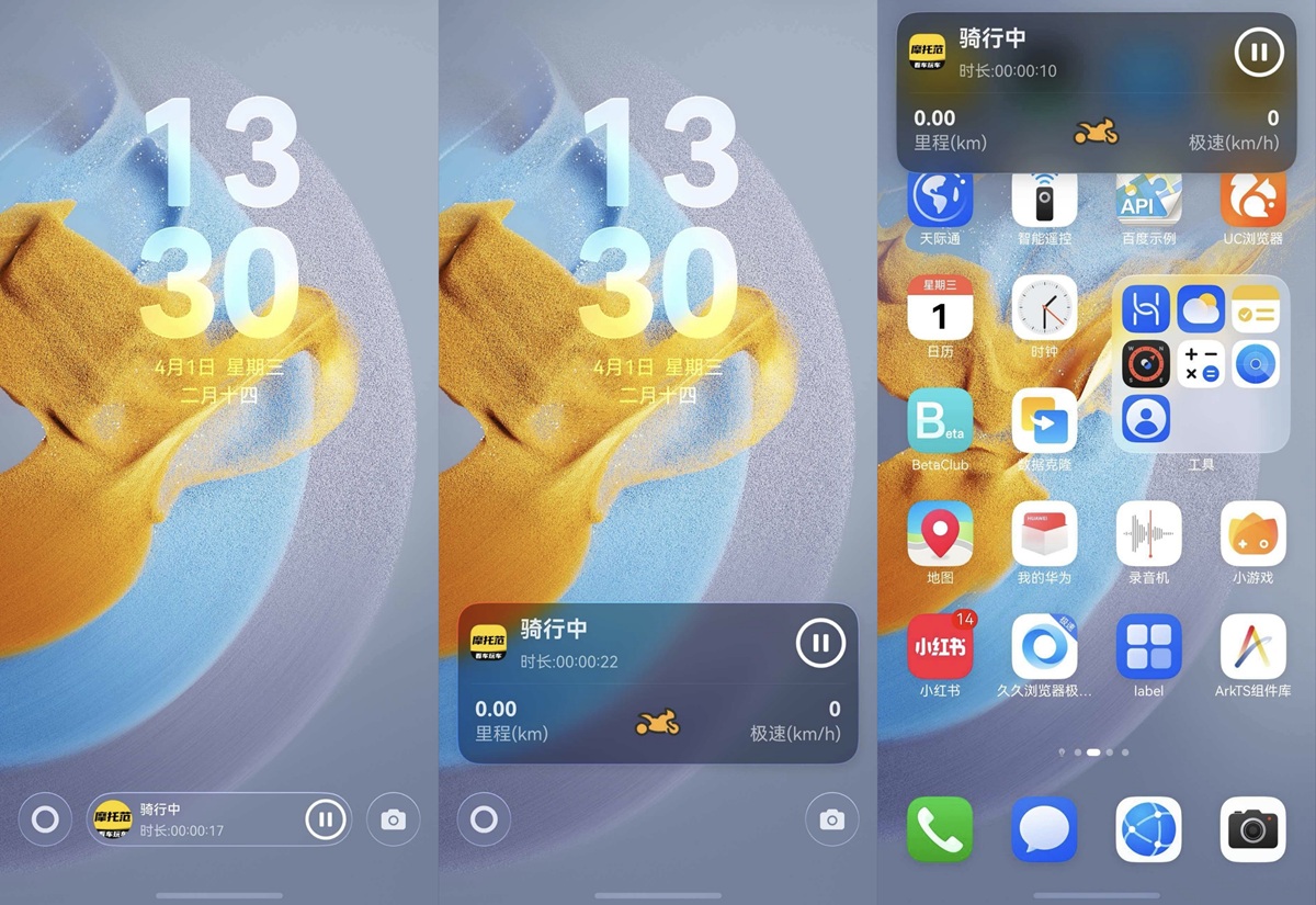 基于鸿蒙系统能力,摩托范将骑行数据直接「钉」在了你的锁屏界面、状态栏或桌面卡片上。无需解锁、无需打开 App,眼神轻轻一扫:骑行时长、当前速度、累计里程……关键信息一目了然。