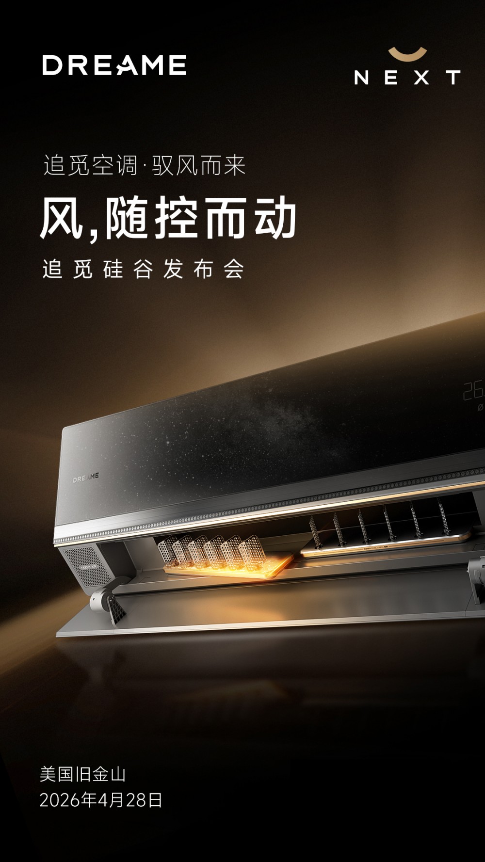 美国时间 2026 年 4 月 27—30 日,备受瞩目的「DREAME NEXT」追觅硅谷发布会周即将在旧金山拉开帷幕。28 日,追觅空调将携两款颠覆性新品强势登场,以 AI 和多项首创技术重新定义品类能力边界,为用户打造主动感知、个性化适配的智慧空调,改写全球消费者对空调与人居关系的认知。