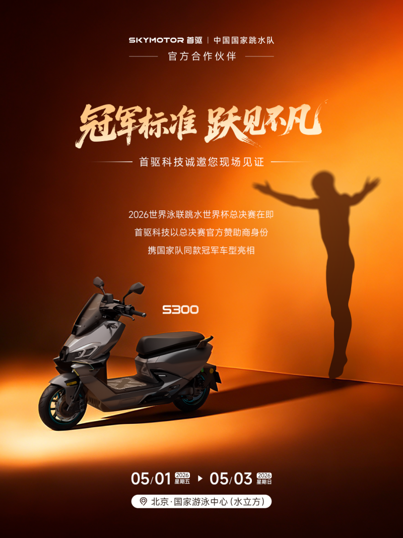 2026 世界泳联跳水世界杯总决赛将于 5 月 1 日至 3 日在北京国家游泳中心(水立方)举行。近日,作为中国国家跳水队官方合作伙伴及官方指定产品,首驱科技正式宣布成为世界泳联跳水世界杯总决赛官方赞助商。这是继今年 2 月与中国国家跳水队达成官方合作后,首驱科技在顶级体育舞台上的又一次重要升级亮相,也标志着其所倡导的「冠军标准」正从训练场走向赛场,并进一步延伸至大众出行场景。