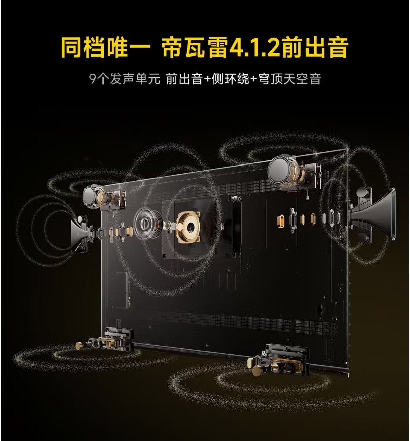 在音质方面,Vidda 发现 X 2027 同样带来了惊喜。它是同价位唯一配备帝瓦雷 4.1.2 前出音系统的电视,彻底解决了传统电视挂墙安装后声音发闷的行业痛点。这套音响系统包含两个前置回音壁、两个侧环绕声道、两个独立天空音单元和一个重低音炮,能够形成 3D 全景环绕声场。当你观看科幻大片时,飞机从头顶飞过的声音、爆炸的冲击波仿佛就在身边,不用额外购买回音壁,就能享受到影院级的听觉体验。