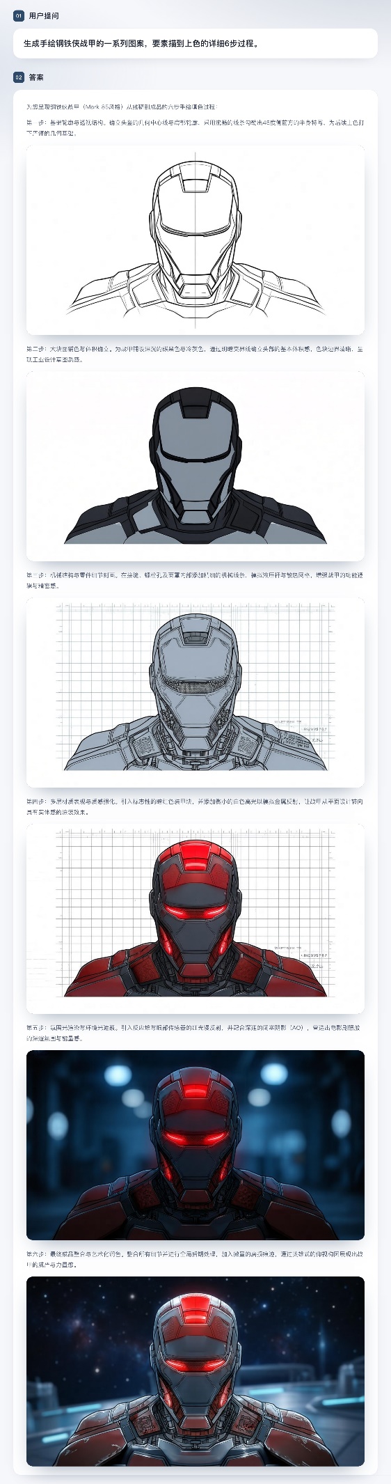 SenseNova U1 可以通过思考与规划产生分步过程,并为每一步输出对应的图像展示,各步骤的图示之间表现出极高的一致性。